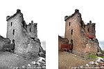 of Urquhart castle situated in the Scottish Highlands on the banks of Loch