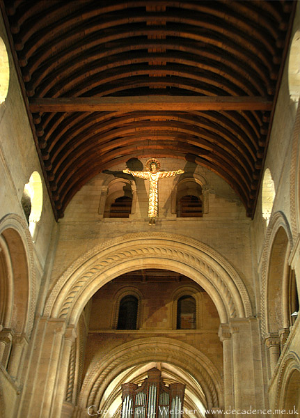 This view taken from the Nave shows the the roof of Norman design that