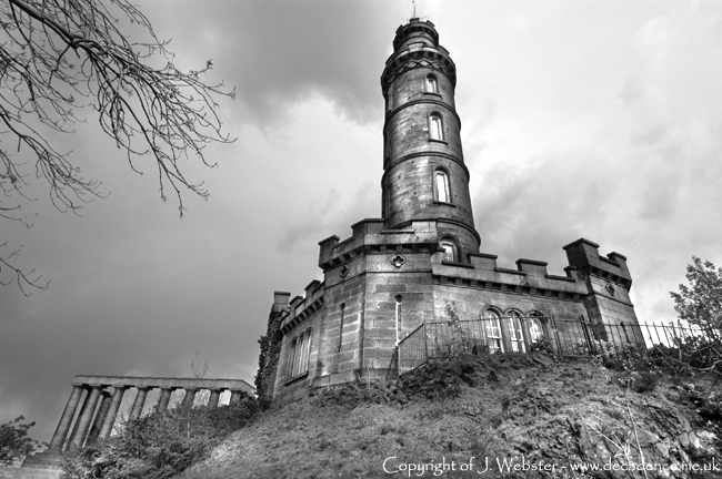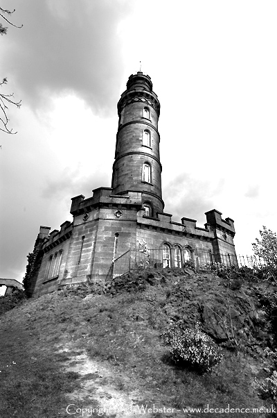 Here are my photographs of Nelsons Monument in Edinburgh. The tower was built as a commemorative tower to Admiral Horatio Nelson and was designed by Robert Burn to look like an upturned telescope, it was built between 1807-1815, the castellated builing at the base of the tower was built between 1814-1816 and was designed by Thomas Bonnar